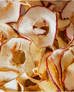 Apple rings dried. The freshest apples are peeled, cored and dried to create a flavour-packed, healthy snack option! These perfect, pale apple rings look fantastic on a platter and their soft, chewy texture makes them a favourite with kids. Keep them nearby at work for a sweet treat without the calories.