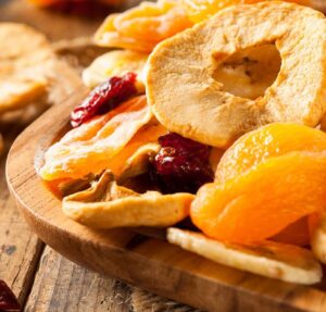 In the early twenty-first century dried fruit consumption is widespread. Nearly half of the dried fruits sold are raisins, followed by dates, prunes, figs, apricots, peaches, apples, and pears. These are referred to as “conventional” or “traditional” dried fruits: fruits that have been dried in the sun or in heated wind tunnel dryers. Many fruits, such as cranberries, blueberries, cherries, strawberries, and mango are infused with a sweetener (e.g. sucrose syrup) prior to drying. Some products sold as dried fruit, like papaya, kiwifruit and pineapple, are most often candied fruit.