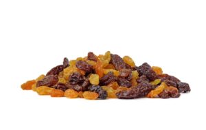 A raisin is a dried grape. Raisins are produced in many regions of the world and may be eaten raw or used in cooking, baking, and brewing. In the United Kingdom, Ireland, New Zealand, Australia and South Africa,the word raisin is reserved for the dark-colored dried large grape,with sultana being a golden-colored dried grape, and currant being a dried small Black Corinth seedless grape.